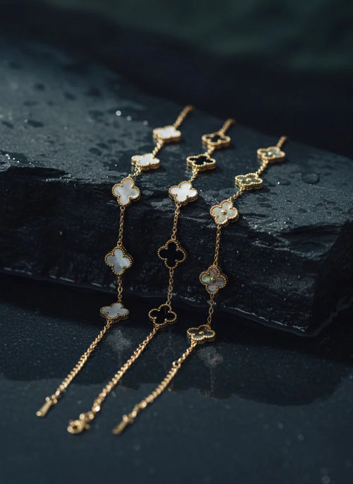 Clover Charm Bracelet (Gold, Black, White,)